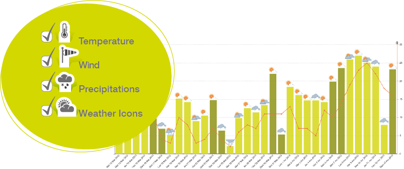 The weather module allows you view your attendance data overlaid with key weather data from a local weather station. The weather and attendance data can be viewed together as a table or graph, allowing you to easily explain variations in pedestrian or cycling activity due to weather fluctuations ….Read more